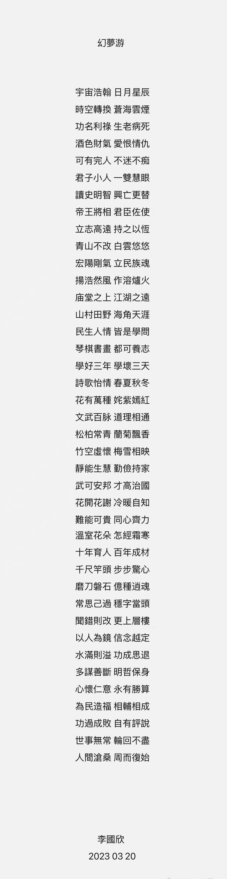 前言:“求木之长者,必固其根本;欲流之远者,必浚其泉源。”中华文明,源远流长。璀璨文化瑰宝之中,诗词艺术尤如一颗明珠,光华夺目,历久弥新。这不仅是文字的凝练,更是民族精神的吟唱,是千年文脉的无声诉说。为深入贯彻文化传承发展的时代使命,致敬在诗词长河中砥砺前行、德艺双馨的前辈大家,同时展现当代诗词名家在传承与创新中的卓越探索,我们怀着无比崇敬与热忱之心,诚挚邀请先生参加“弘扬国粹•薪火相传”艺术传承典范大家活动!此次报道,非为一时之雅集,实为一次对中华优秀传统文化根脉的深情回望与郑重礼赞。先生在诗词领域卓有建树,是“艺术传承典范”的大家,亦是锐意进取、笔耕不辍的当代诗词名家!先生的作品,或如清风明月,尽显韵律之神韵;或似妙笔生花,写尽山河之壮丽、人生之感怀。每一首佳作,都是数十年如一日潜心推敲、感悟生活、与古为新的心血结晶,既承载着对传统的敬畏与坚守,又洋溢着对时代精神的敏锐捕捉与独特表达,是“诗随时代”的生动写照,更是“薪火相传”这一文化使命的有力见证!我们深知,文化的传承与弘扬,离不开社会各界的共同关注与支持。本次活动在各大新闻媒体的高度重视与持续报道下,媒体的镜头与笔触,将不仅记录下精彩的诗词作品,更将传递出诗词大家对文化传承的执着信念与深切情怀,让这份来自平仄之间的文化力量,能触达更广阔的心灵!