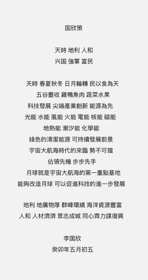 李国欣,福建省莆田市人1995年江口锦江中学高中毕业1998年英国伦敦务工伦敦市最大的蔬菜水果批发市场中的光明果菜批发有限公司中工作2007年伦敦五运有限公司里工作九个月2008年经营一家公司东方餐饮2022年公司转让转作自由媒体至今现为北京翰林书画院院士全国非物质文化遗产传承人之一国际非物质文化艺术促进员之一走向世界的国礼艺术家之一