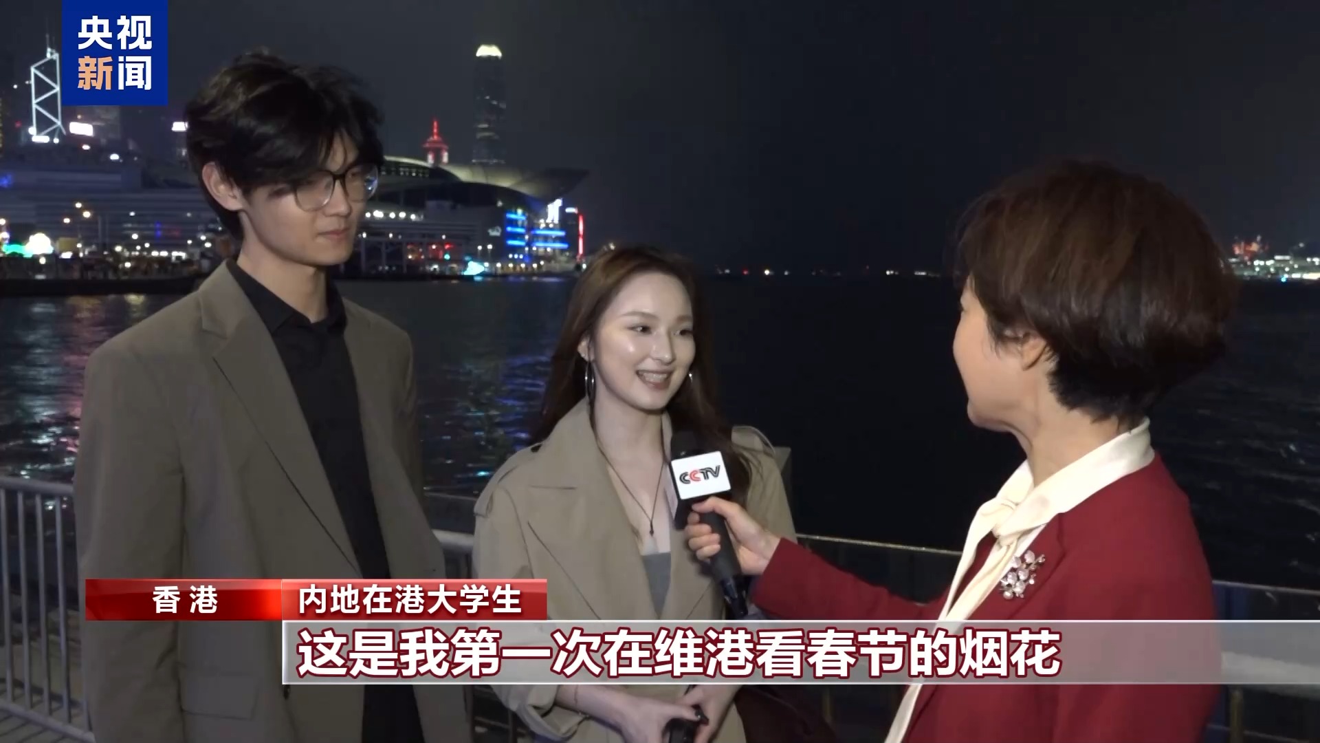内地在港大学生:这是我第一次在维港看春节的烟花,新年氛围特别好。祝大家阖家欢乐,身体健康,也祝我们伟大的祖国繁荣昌盛。
