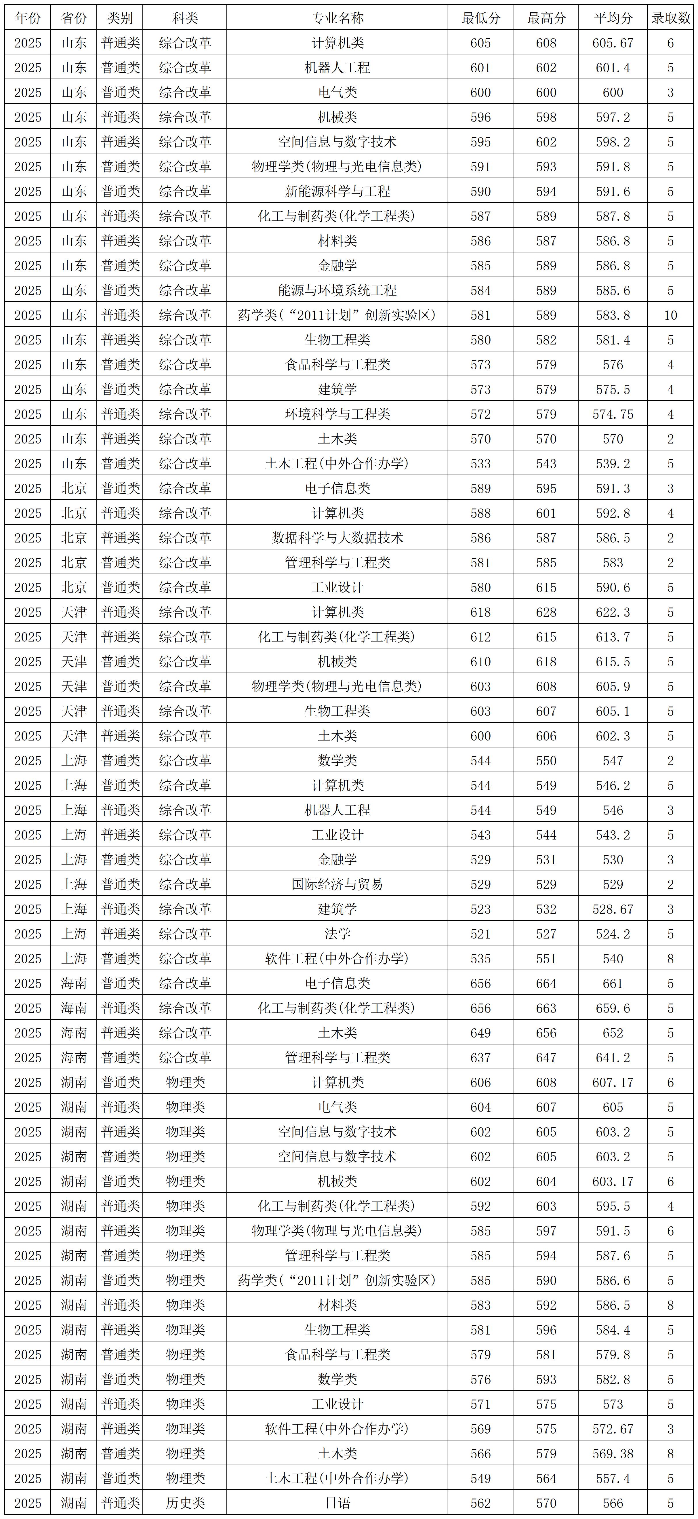 浙江工业大学2025年在山东本科批录取分数线较高的专业:计算机类605分、机器人工程601分、电气类600分、机械类596分、空间信息与数字技术595分,最低的是土木类570分。