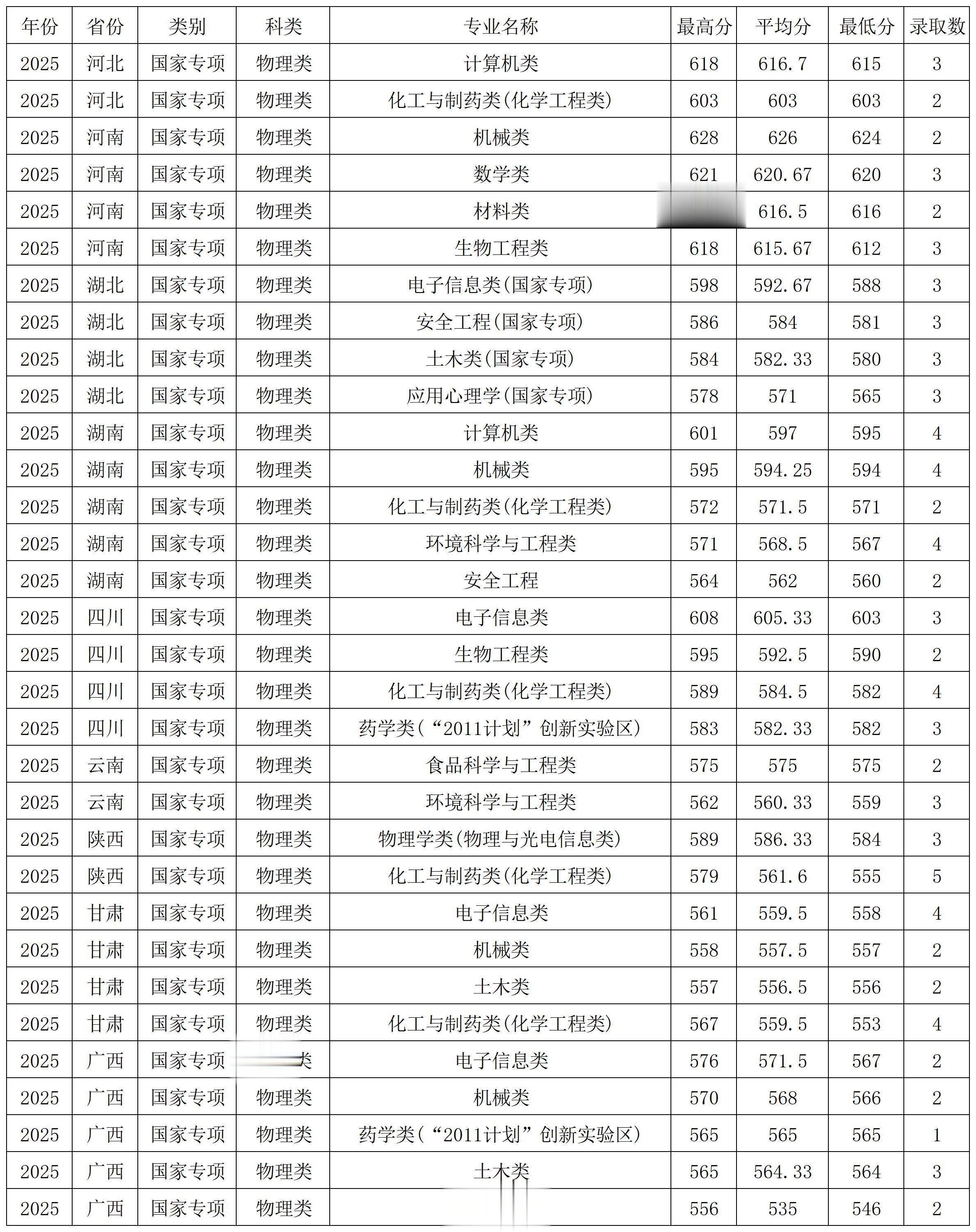 浙江工业大学2025年国家专项在各省各专业 录取分数线
