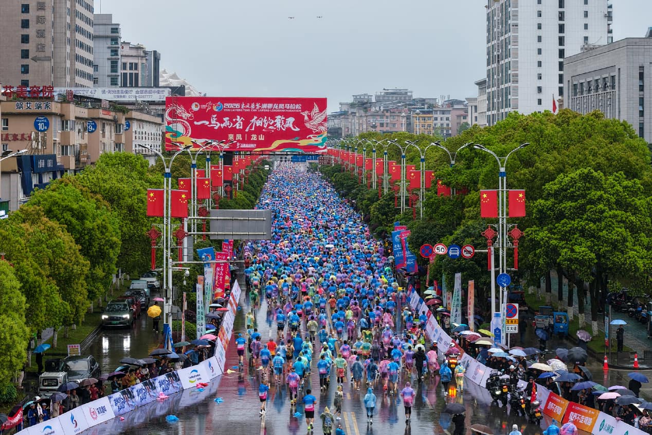 一马两省,相约龙凤!4 月 11 日,2026 来凤藤茶湘鄂龙凤马拉松在湖北省恩施州来凤县鸣枪开赛。来自天南海北的跑者欢