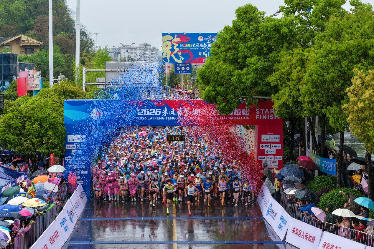 一马两省,相约龙凤!4 月 11 日,2026 来凤藤茶湘鄂龙凤马拉松在湖北省恩施州来凤县鸣枪开赛。来自天南海北的跑者欢聚湖北来凤、湖南龙山双城,用一场跨越两省的奔跑,领略 “龙凤呈祥” 的城市魅力。恩施州、来凤县、龙山县相关领导出席起跑仪式并共同为比赛鸣枪。
