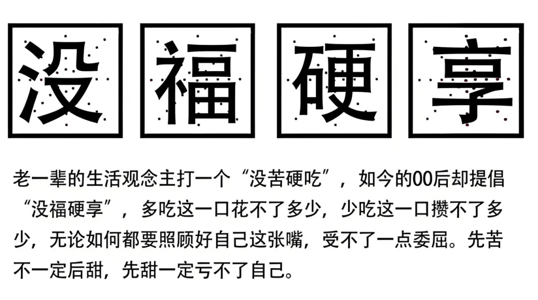 年轻人之所以会出现“没福硬享”的现象,主要是由时代背景、社会文化以及心理学因素共同作用的结果。从“没苦硬吃”到“没福硬享”,这种转变体现了人类心理发展的自然规律,也是社会发展进步的表现之一。