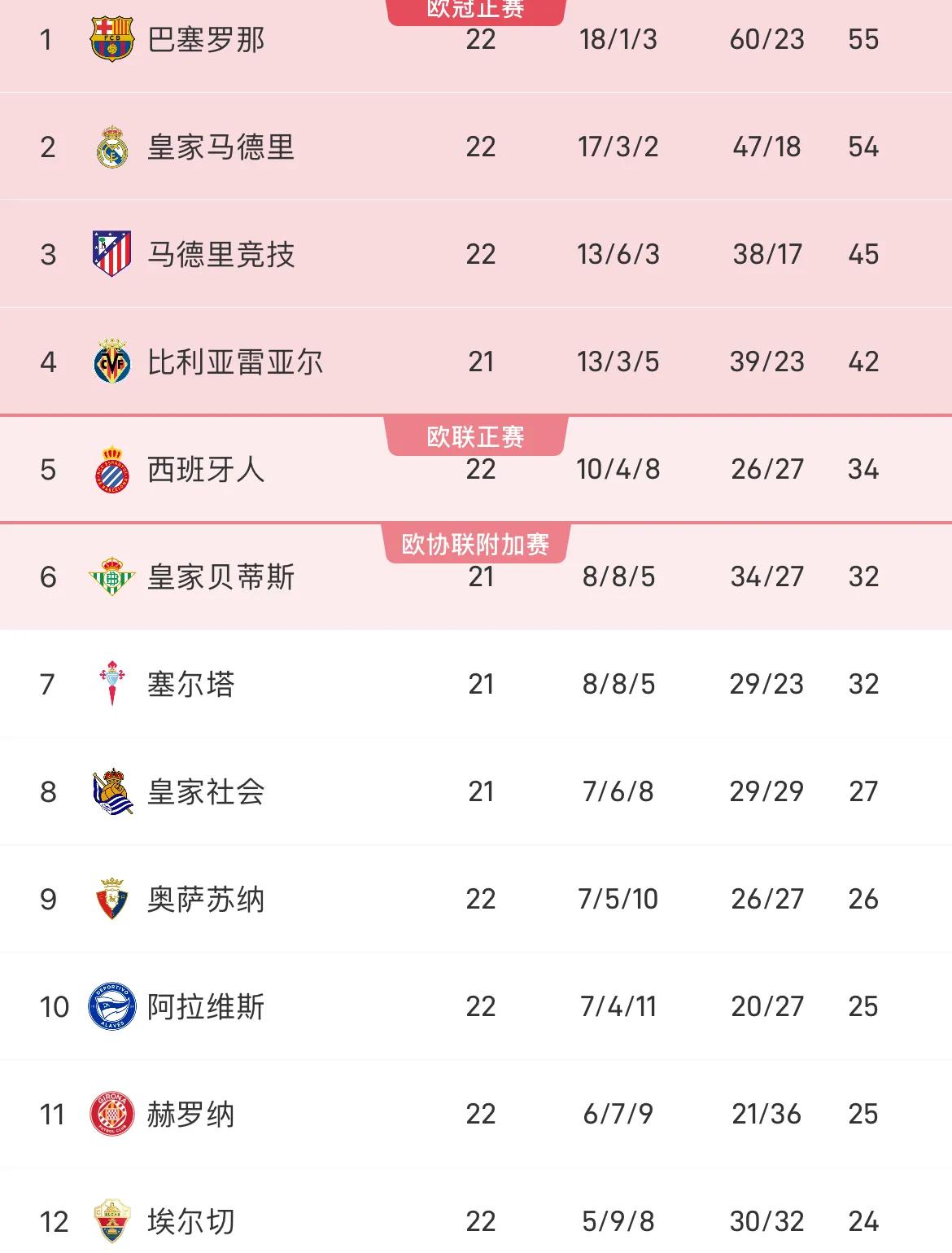 最终皇马2-1击败巴列卡诺,最新西甲积分榜如下: