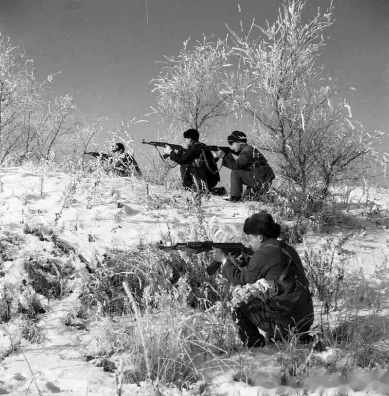 建设兵团肩负着屯垦、戍边的双重任务,是农民也是士兵。每个团里,都有几个武装连队,军事训练常态化。照片中,战士们冒着严寒在雪地里训练。
