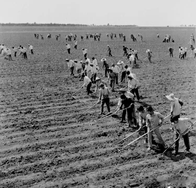在一望无际的田野里,建设兵团的战士们在锄地,这场面太壮观了。锄禾日当午,汗滴禾下土。他们用双手耕耘希望, 用汗水浇灌出边疆的繁荣与安宁。