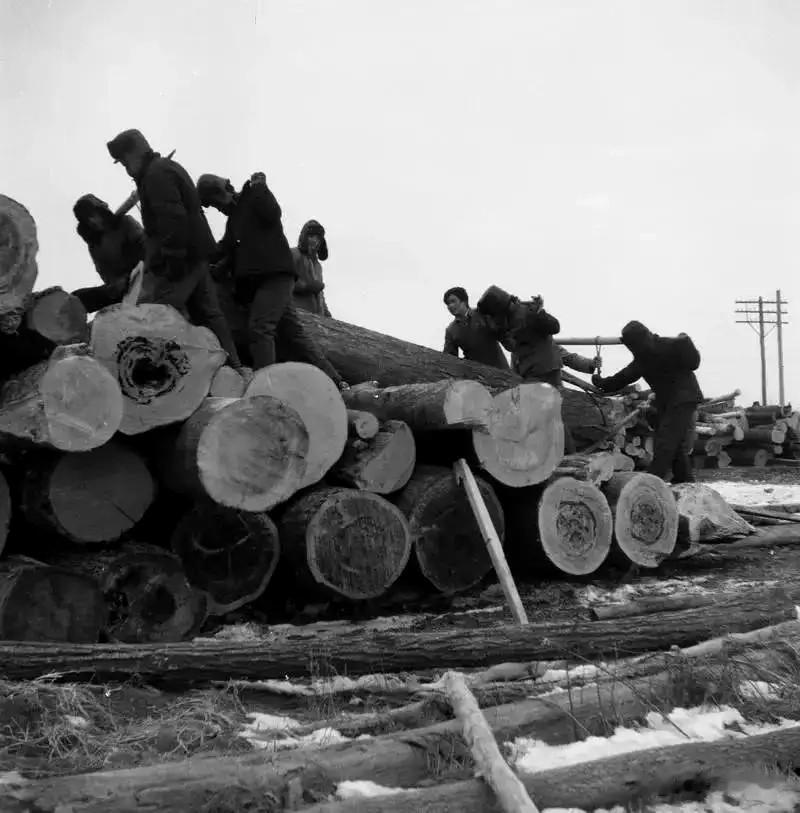 步一连的指战员在完成训练任务的同时,还承担着伐木、归楞、基建等工作。