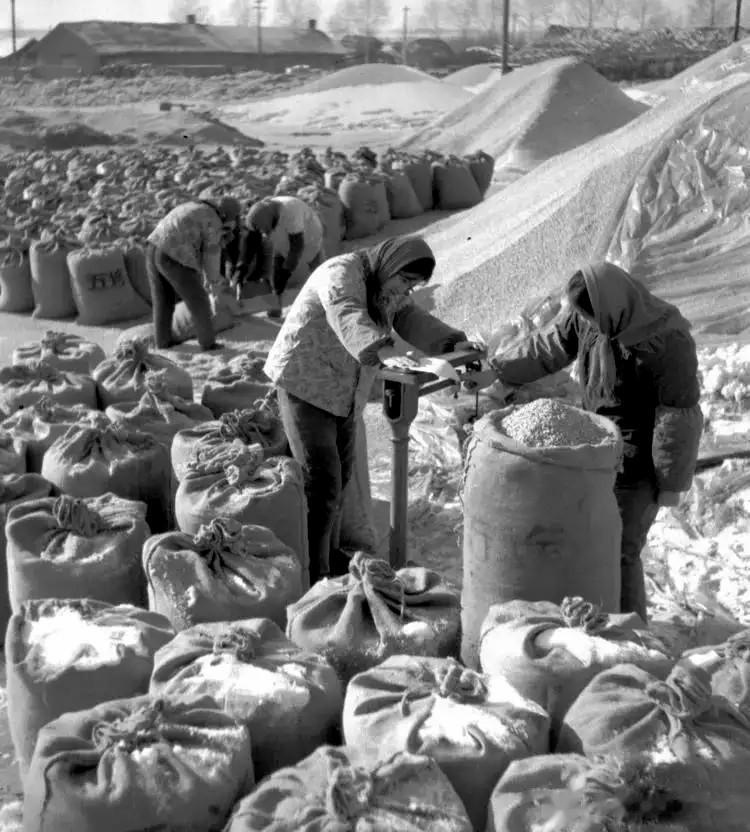 然后将晒好的粮食装进麻里,并由专人进行称量和统计好重量。