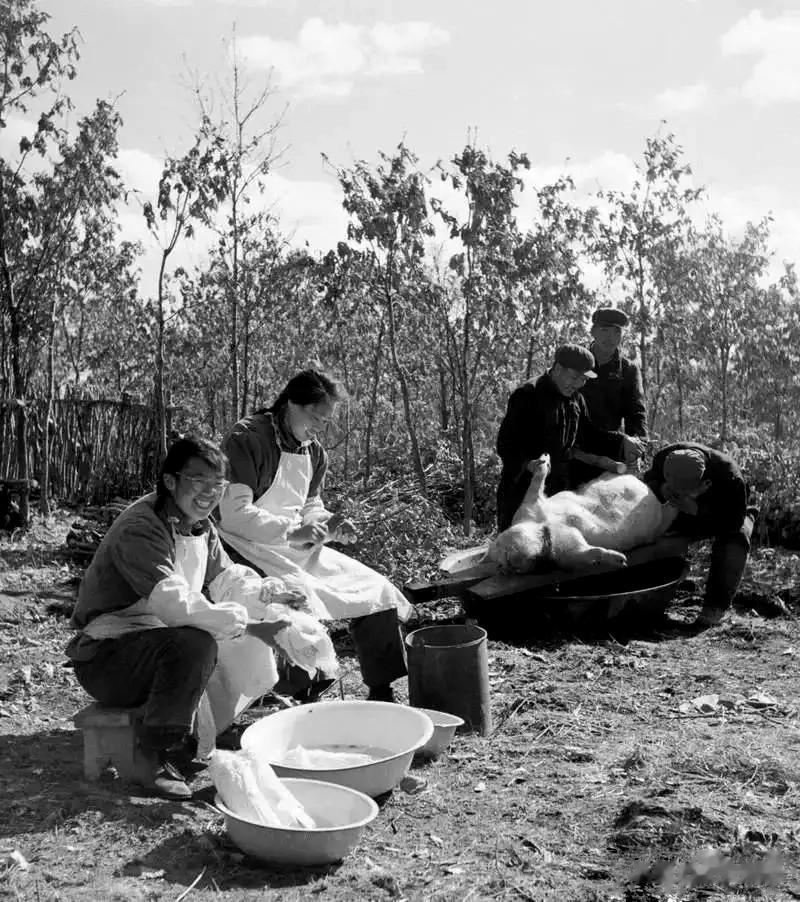 70年代国庆节,建设兵团新建19连食堂杀了一头大肥猪,改善大家的生活。