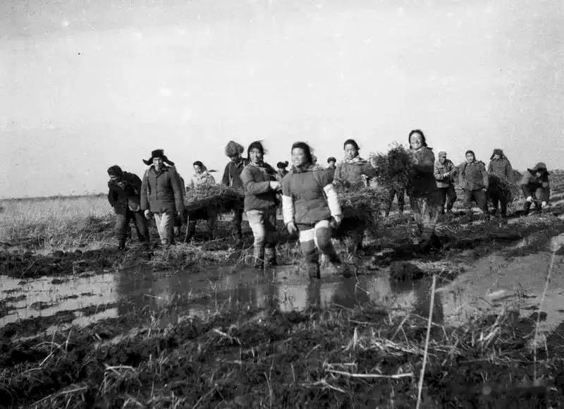 十月的北大荒,天气寒冷。一场大雨过后,地里成熟的大豆被水淹,战士们跳进冰冷的水里抢收豆子。据说,兵团的很多人落下了腰腿痛的病根。