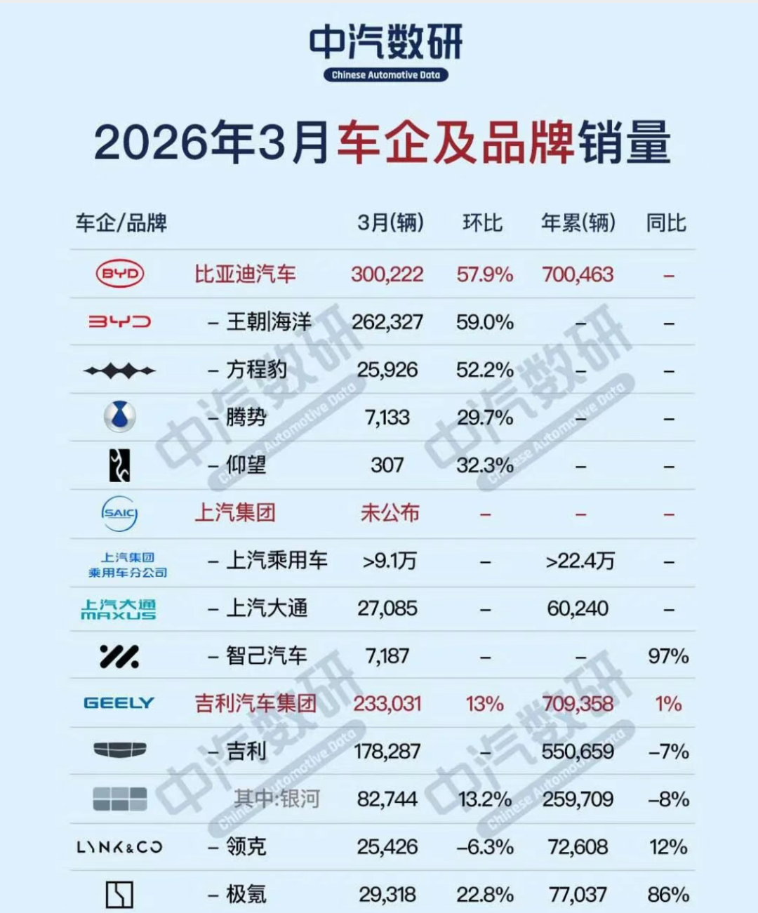 近日,各大主流车企相继公布了自家3月的销售数据,这也标志着2026年第一季度随