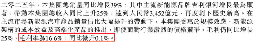 2025年,吉利的销量和营收都呈现出了同比双位数的大幅增长,但与此同时,利润的增长却微乎其微。