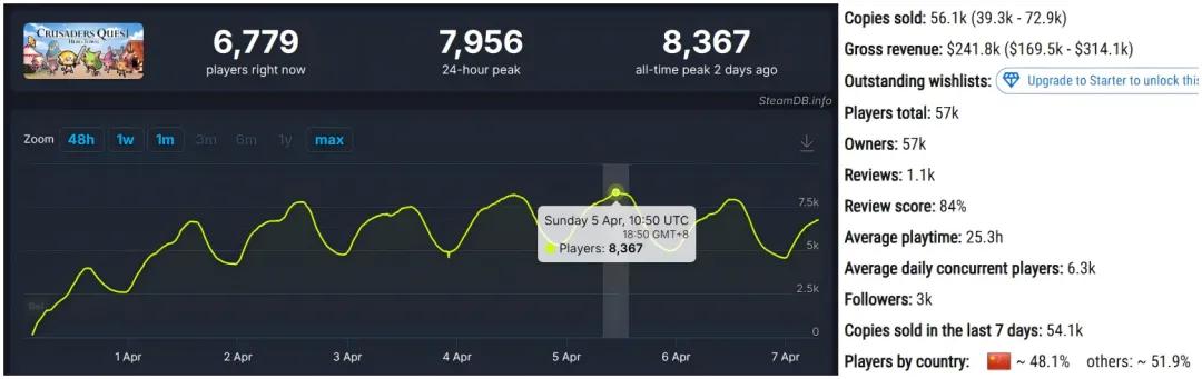 相比原作过去的辉煌,新作成绩并不理想。虽然有1100多人给出83%的好评率,但堪堪超过3000的关注人数,不到6万套的销量,以及24万美金(约160万元)的收入,还是有种难以名状的悲凉。