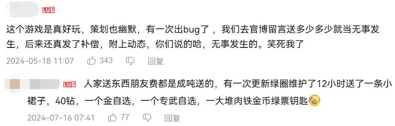 尤其它在福利方面非常大方,经常给玩家送大额资源,这个习惯一直延续到现在。同时游戏内容的开发也特别侧重细节和小巧思,陆陆续续融入了轻SLG、钓鱼、音游等玩法。