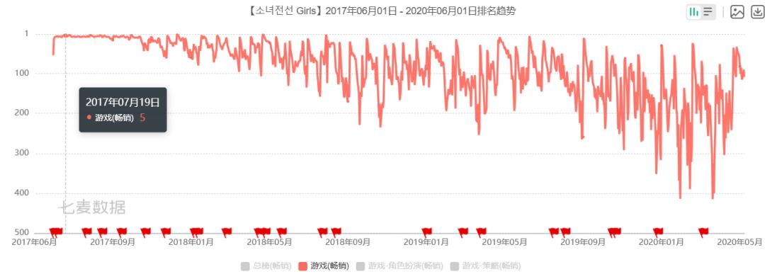 同时2017年还是韩国二游市场的起点,《少女前线》6月在韩国一炮而红,10月份《崩坏3》迅速跟进,配合《暖暖》在女性向领域的攻势,国产手游快速在当地撕开一道口子,也把二游文化带到当地。