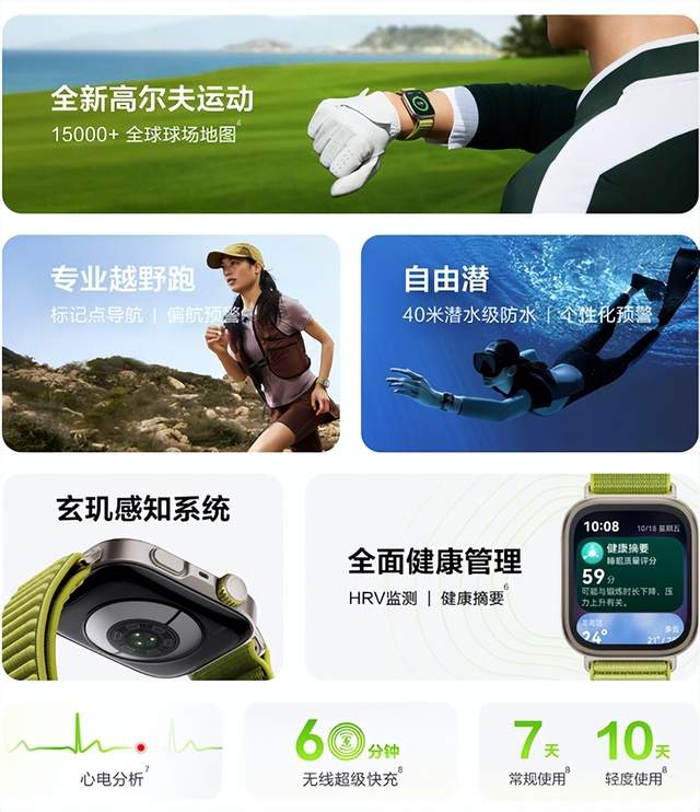 但真正让它脱颖而出的,是硬核的运动能力。过去,千元手表在水上运动面前基本“失语”,而华为WATCH FIT 4系列首发水上运动轨迹功能,支持帆船、皮划艇、摩托艇、龙舟等7类项目,能精准记录路线、速度与距离。配合新增的海拔气压计和华为自研的向日葵定位系统,无论是城市骑行还是山野徒步,定位更快、数据更准。要是预算再多点,或者说想更专业的模式,可以上华为WATCH FIT 4 Pro,它支持40米自由潜、高尔夫球场模式(含3D球道、果岭坡度、电子记分卡)、专业越野跑等高阶场景,堪称千元价位里的户外专家。