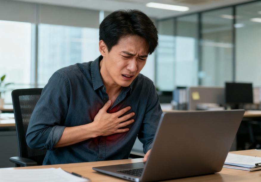 第二个信号是突然的“喘不过气”和明显乏力,像电量一下掉到底。心梗不只是“痛”,它的本质是心肌缺血后泵血能力变差,身体会立刻用呼吸加速来补偿,有的人不一定胸痛明显,却先出现胸闷、气短、坐着都觉得不够用,走几步就心慌,甚至夜里平躺更憋、需要垫高枕头。还有一种很典型的感觉:以前能轻松做的事,比如提菜、爬两层楼、快走十分钟,突然变得很费劲,伴随一种说不清的心里发慌和虚脱感。很多人把它当作“最近太累、太焦虑、体力差”,但如果乏力是突然出现的、程度明显、休息也缓不过来,尤其还伴随冷汗、脸色发白,这就不是“熬一觉就好”的级别。