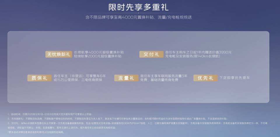 此次限时权益中的多项福利,直接折现了未来开支。价值3990元的充电桩及安装服务,对于有固定车位的用户而言,意味着一次性解决了家庭充电问题。基础流量终身免费政策,则免去了用户后续为车机导航、在线音乐等服务续费的开支,这些看似不起眼的费用,在长达6-10年的用车周期里累积起来也是一笔不小的数目。