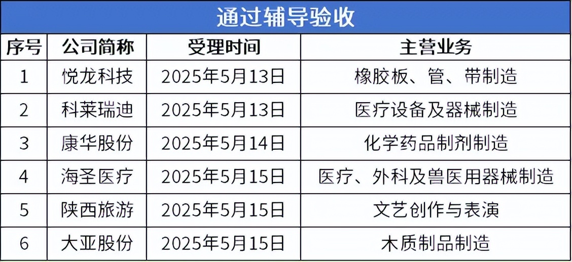 5月12日-5月18日,北交所有6家公司通过辅导验收。