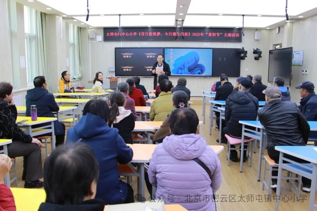10月28日上午,北京市密云区太师屯镇中心小学开展“昔日您筑梦,今日邀您回家”退休教职工重阳节主题活动,旨在传承中华民族尊老、敬老、助老的传统美德,进一步丰富退休教职工的精神文化生活,传递学校对退休教职工的深切关怀与崇高敬意。学校党总支书记郭春梅、校长张海、工会主席张永等学校干部,青年教师与退休教师们齐聚一堂,共庆重阳佳节。