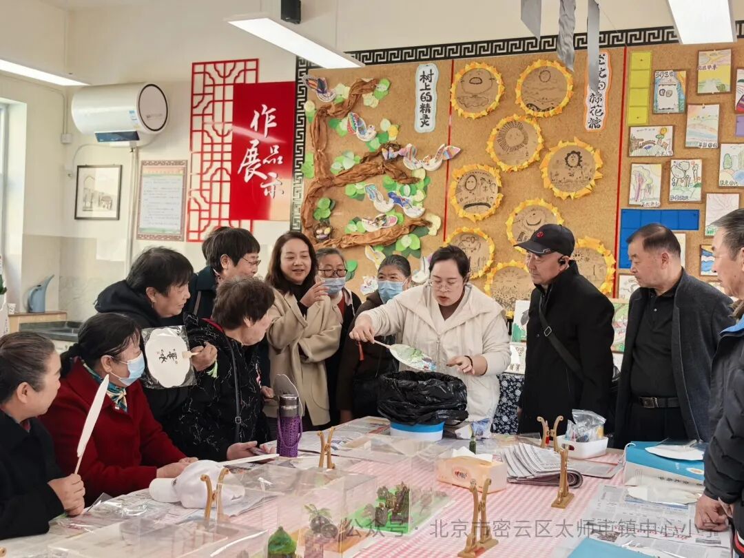 在青年老师的指导下,退休教师们体验剪纸和漆画。他们互相交流、彼此指导,欢声笑语不断。一双双曾经执握粉笔的手,此刻创作出精美的艺术品,展现了他们不减当年的风采与对生活的热爱。