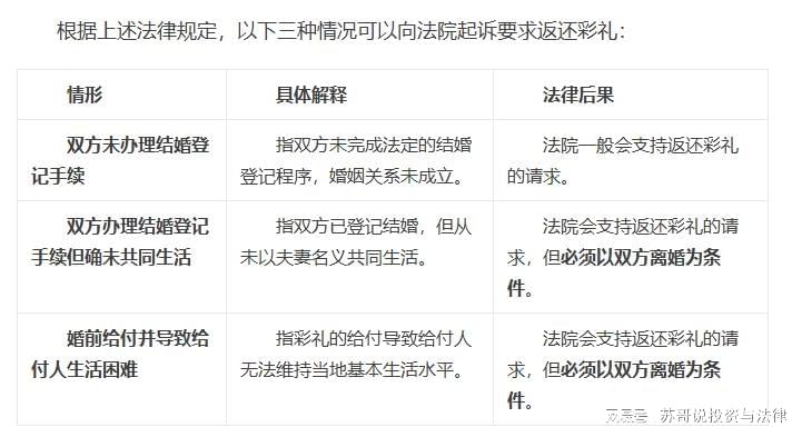 结论:您可以向法院起诉要求返还彩礼,但必须满足上述三种法定情形之一。具体能否返还以及返还多少,需由法院根据证据和具体情况裁判。