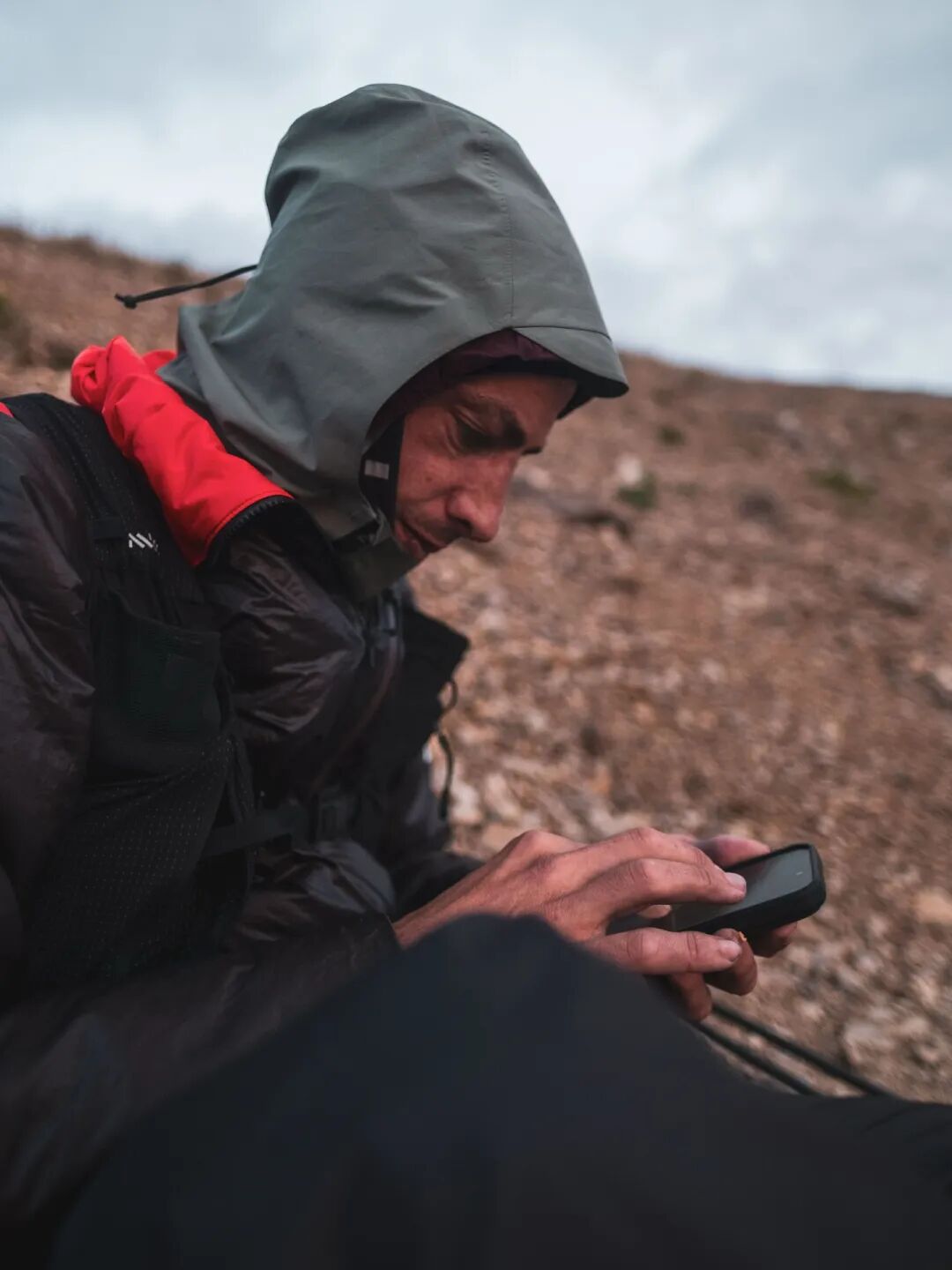 但真正有趣的物件还属 Kilian Jornet 的手机,他在挑战开始一周左右时不幸摔坏了手机。按照团队成员在 IG 上所描述的那样,Kilian Jornet 在每次探险都会保留着这种“传统”——摔坏手机,并合理猜测他是为了适当断联以独自享受在山里的时光。