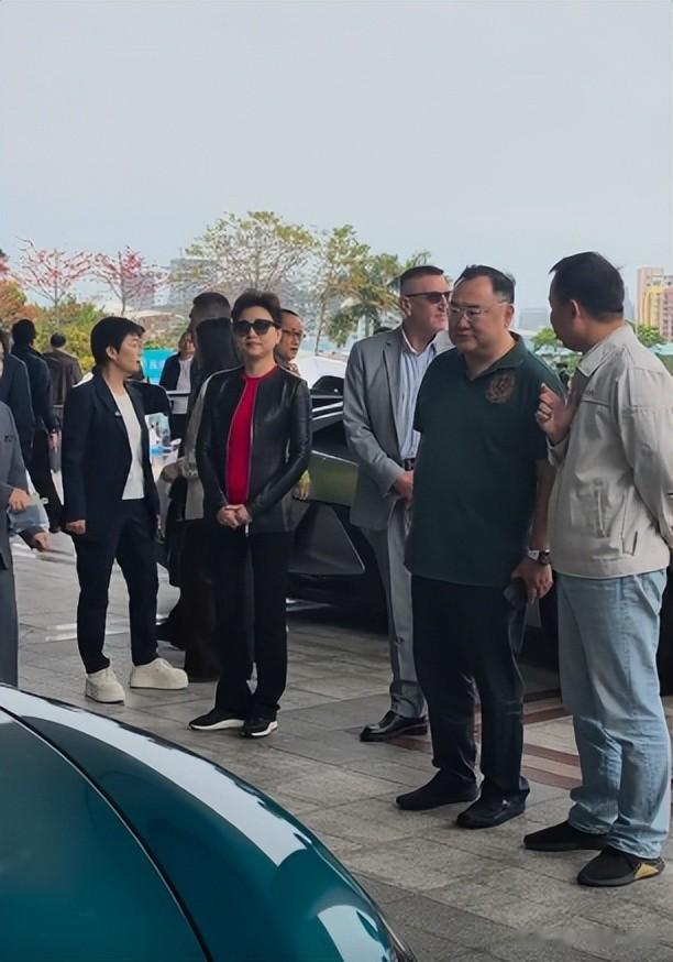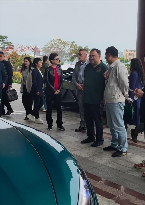 这次的车展,去的不只有她还有她的丈夫吴征,重量级的人物一出现,她陪在旁边像个小跟班。