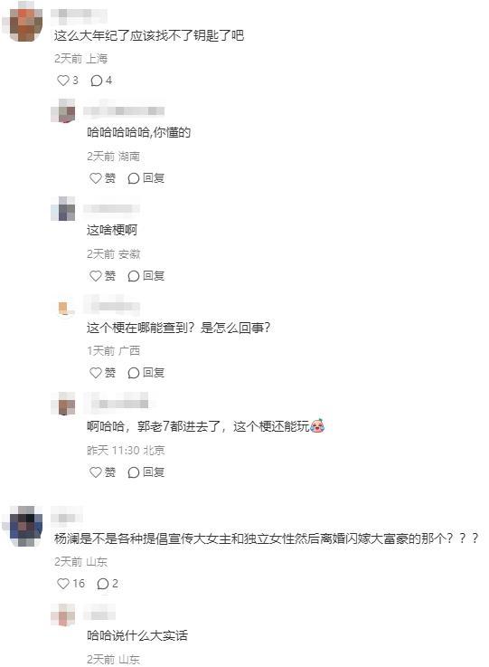 直到近几年,还有一些用户脑洞大出,评论道“杨澜在找钥匙方面才是最精通的”,用来嘲讽她的商业运作手段。