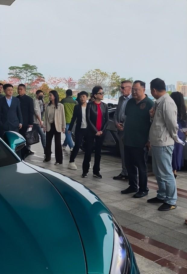 夫妻俩的旁边不仅有外国友人,还有一个比亚迪的老总。