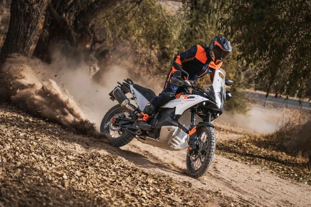 悬挂和通过性上,普版标配43mm WP APEX全可调倒置前叉+后中置减震,前后200mm行程,压缩、回弹、预载全可调;R版升级WP XPLOR悬挂,行程更长。座高840-860mm,还有233mm高离地间隙,20升油箱续航,公路与非铺装通过能力更是无需担心。