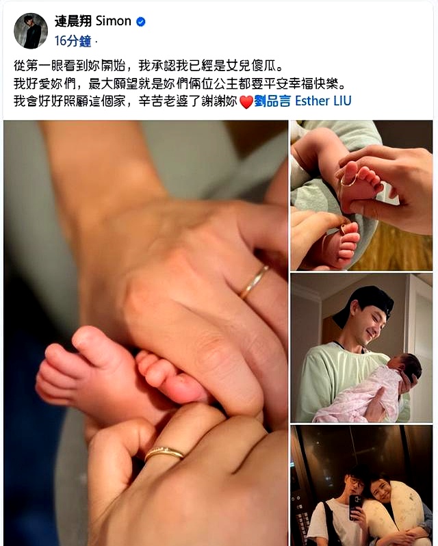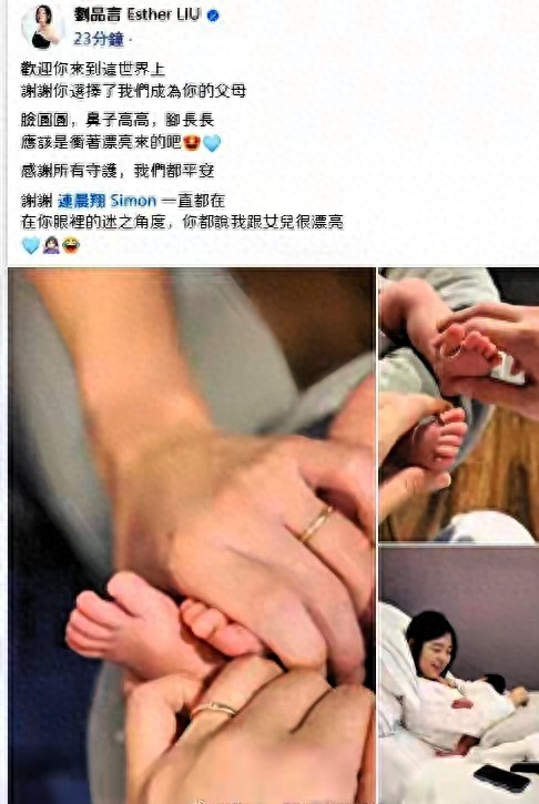 随后,刘品言的老公连晨翔也激动宣称:“从第一眼看到你开始,我承认我已经是女儿傻瓜。”还暖心承诺会 "好好照顾两位公主"。还特别感谢老婆的付出,这狗粮撒得又实在又戳心。夫妻二人晒出的照片更是格外温馨 —— 将婚戒套在宝宝的小脚趾上,两人各握一只小脚丫,画面甜度满分。