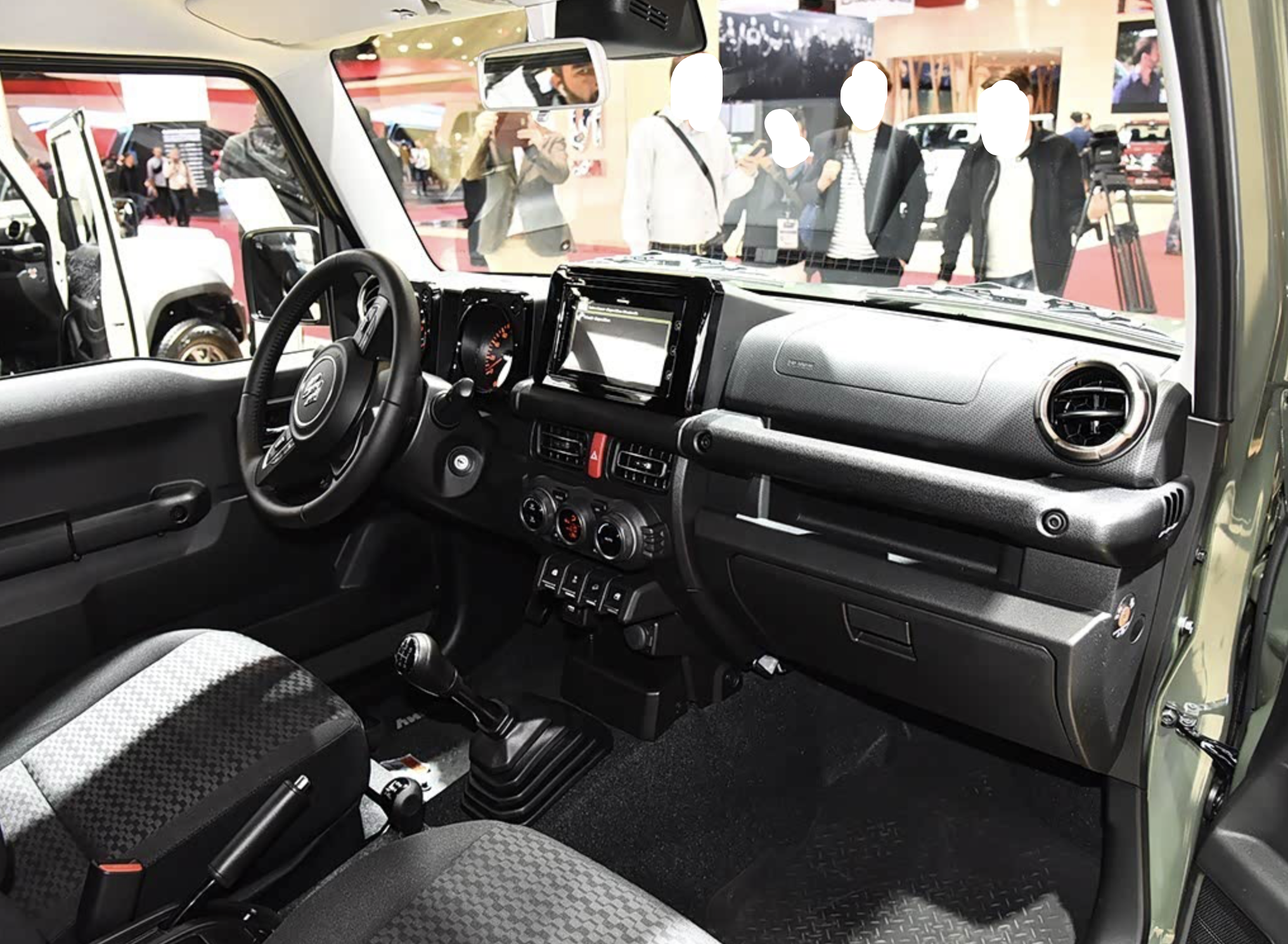 全新的吉姆尼皮卡车内也采用了粗犷的设计,大面积黑色硬塑料壳体,织物面料的铺陈,虽然质感更加生硬,但是更易清洗。大量平直的线条和圆形的设计,凸显出了它复古迷人的气质。三幅式多功能方向盘、织物座椅、正圆形出风口和炮筒式指针仪表都显得很有特色。中控台配备了经典的三辐式多功能方向盘,操控岛区域保留了大颗粒圆形空调旋钮,下方还保留了方正的实体按键。经典的手动变速箱拨杆、分时四驱拨杆,还有炮筒式空调出风口。车内还配备了织物座椅,填充硬质,支撑性更好。后排配备的座椅更加硬朗,好的一点是后排座椅靠背支持角度调节,舒适感有了明显提升。