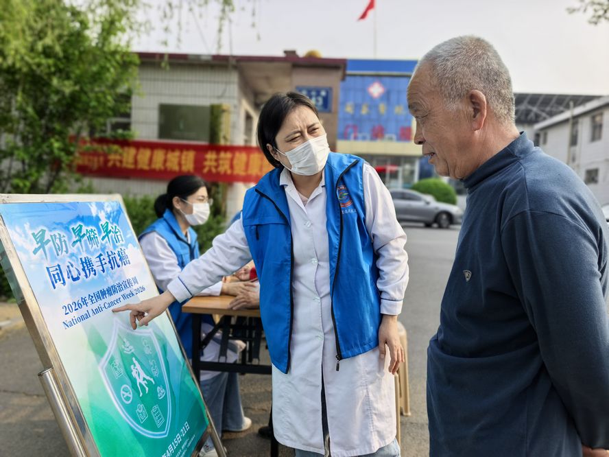 4月15日,桓台县果里镇周家卫生院“向阳花”家庭医生团队来到闫家村大集,向群众普及癌症防治科学知识。2026年4月15日—21日是第32个全国肿瘤防治宣传周,主题为“早防早筛早治 同心携手抗癌”。桓台县各级医疗卫生单位大力宣传宣传周主题和《中国防癌健康生活方式守则》等,持续推进病因预防、筛查诊治、社会共治、科普宣教等工作,全面控制癌症危害。