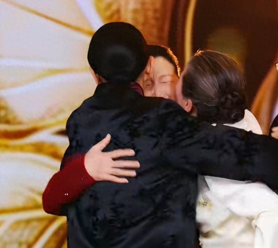 比得奖更让她激动的是,她和年轻时的姐妹倪萍、徐映红再次拥抱在一起。