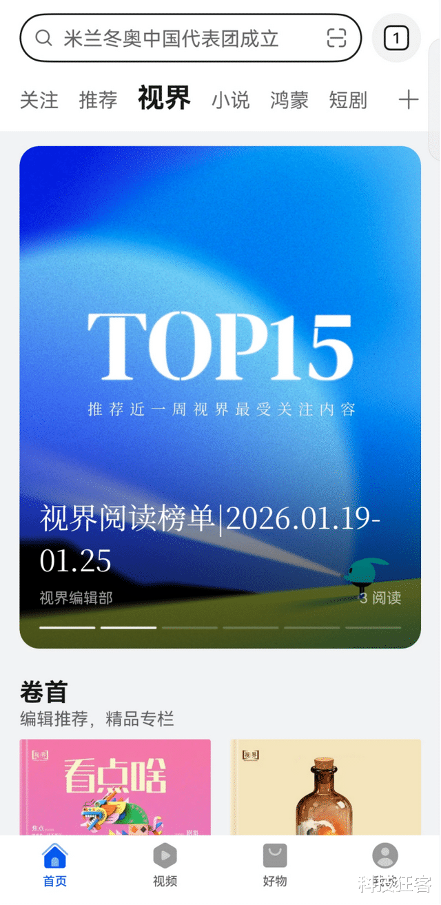在“视界”频道里,最吸引我的就是首页显眼的「视界阅读榜单」,它每周都会把上一周视界频道里最受用户关注的优质资讯内容按排序整理出来,一周的重点资讯都可以在这里看到!