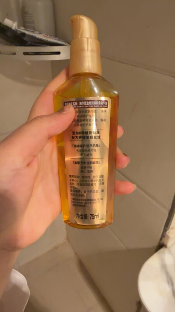 它的这款欧莱雅奇焕护发精油用起来尚可,湿发时抹几滴顺手梳开,手感确实滑了些,但干后维持时间不太久。技术上主打98%天然来源的植物精油复配体系,配合微囊包裹缓释技术,理论上能持续滋养发丝。不过香味太浓了,刚涂上那股甜腻香精味有点熏人,留香又短,吹完头发基本就闻不到了。