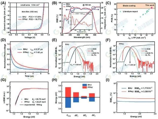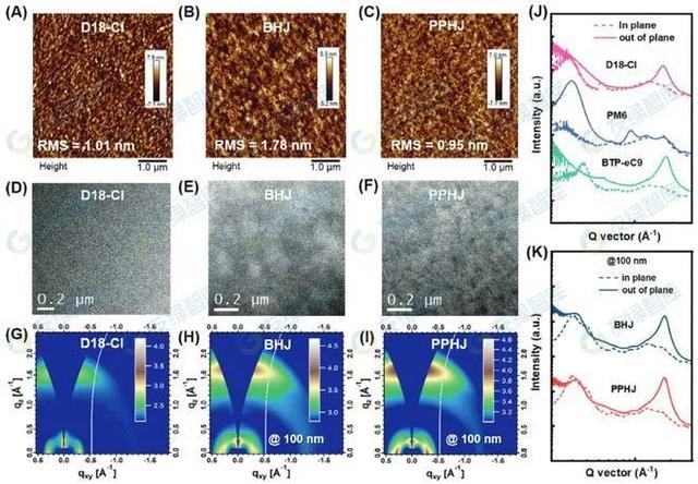 D18-Cl的加入调节了分子结晶,并产生了理想的垂直分层,同时抑制了电压损失,优化了能量紊乱和载波管理。令人印象深刻的是,与BHJ器件相比,最优PPHJ器件表现出优越的功率转换效率(PCE),分别为19.05% (100 nm)、17.33% (300 nm)和14.14% (4 cm2)。