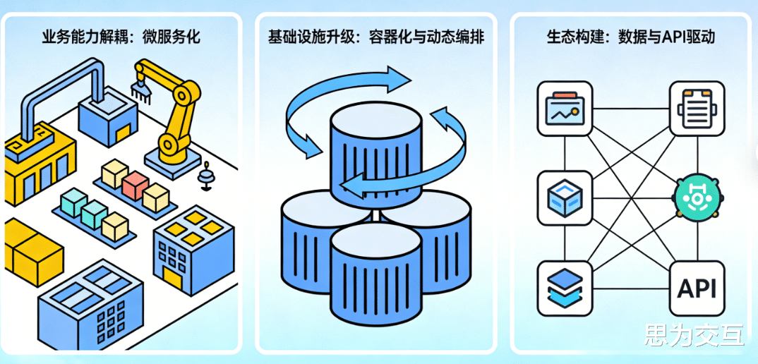 云原生架构为破解上述难题提供了全新的技术范式。其核心不是某个具体产品,而是一套包含微服务、容器化、DevOps、服务网格和声明式API等理念的体系。在制造业语境下,它意味着: