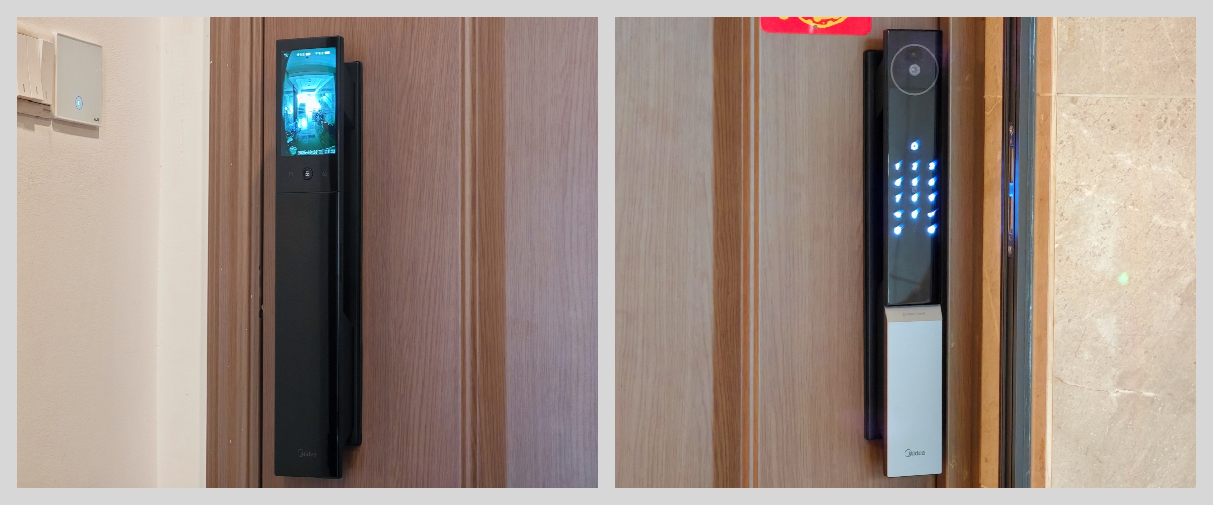 而在我干饭晚归到家,灯光昏暗的情况下,得益于 红外人像补光灯的协助,美的智能门锁X3的识别速度丝毫没有降低迹象,开门丝滑依旧。