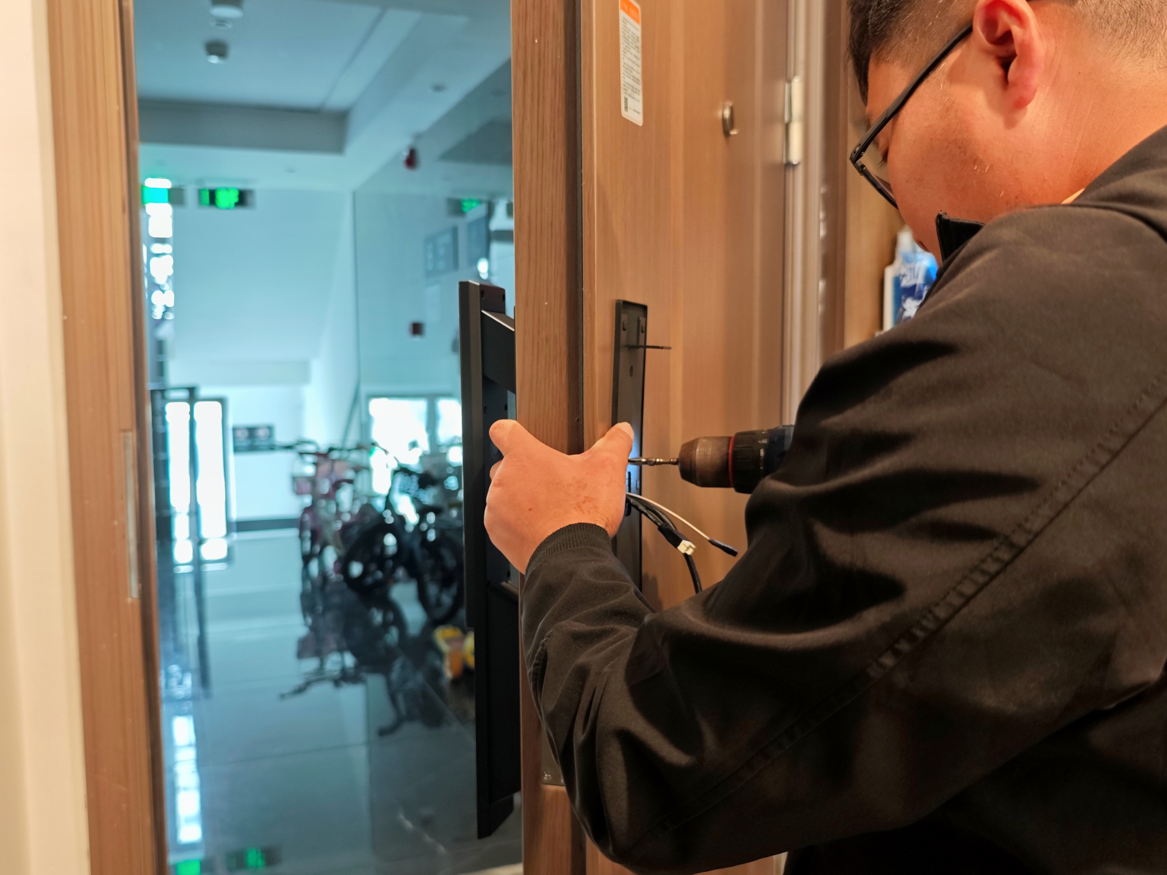 ▲师傅帮我三下五除二拆了旧锁,得益于 标准锁体+孔位 ,安装起来不需要再打孔。之后就安装锁体、锁芯、前面板、后面板。整个过程行云流水,不到1小时就搞定!师傅很专业!