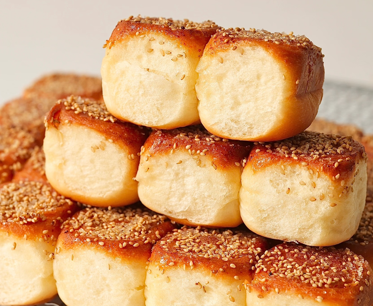 揉好的面团盖上保鲜膜,放在暖气片上发酵。我盯着钟表数时间,40分钟后面团就膨胀成两倍大的“白胖子”。这时候别急着烤,先给它“排气”——像给气球放气似的按压几下,再分成8个小剂子。每个剂子擀成牛舌状,卷成圆柱后从中间切开,底部蘸上混合了蜂蜜和白糖的“魔法糖浆”,整齐码进刷好油的烤盘里。