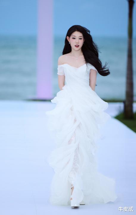 李沁本次的造型终于没有让人失望,海风也对她格外温柔,吹拂长裙令她宛若仙子临凡。