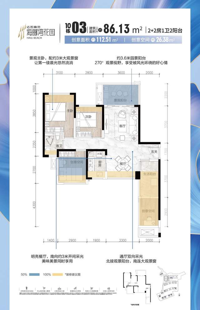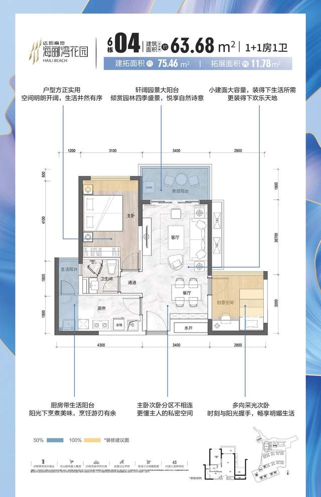 项目雄踞湛江CBD/CLD(中央商务区/中央生活区)双核中心,片区内唯一在售的带自建学校/高赠送/带壕华装修的/超百亩超