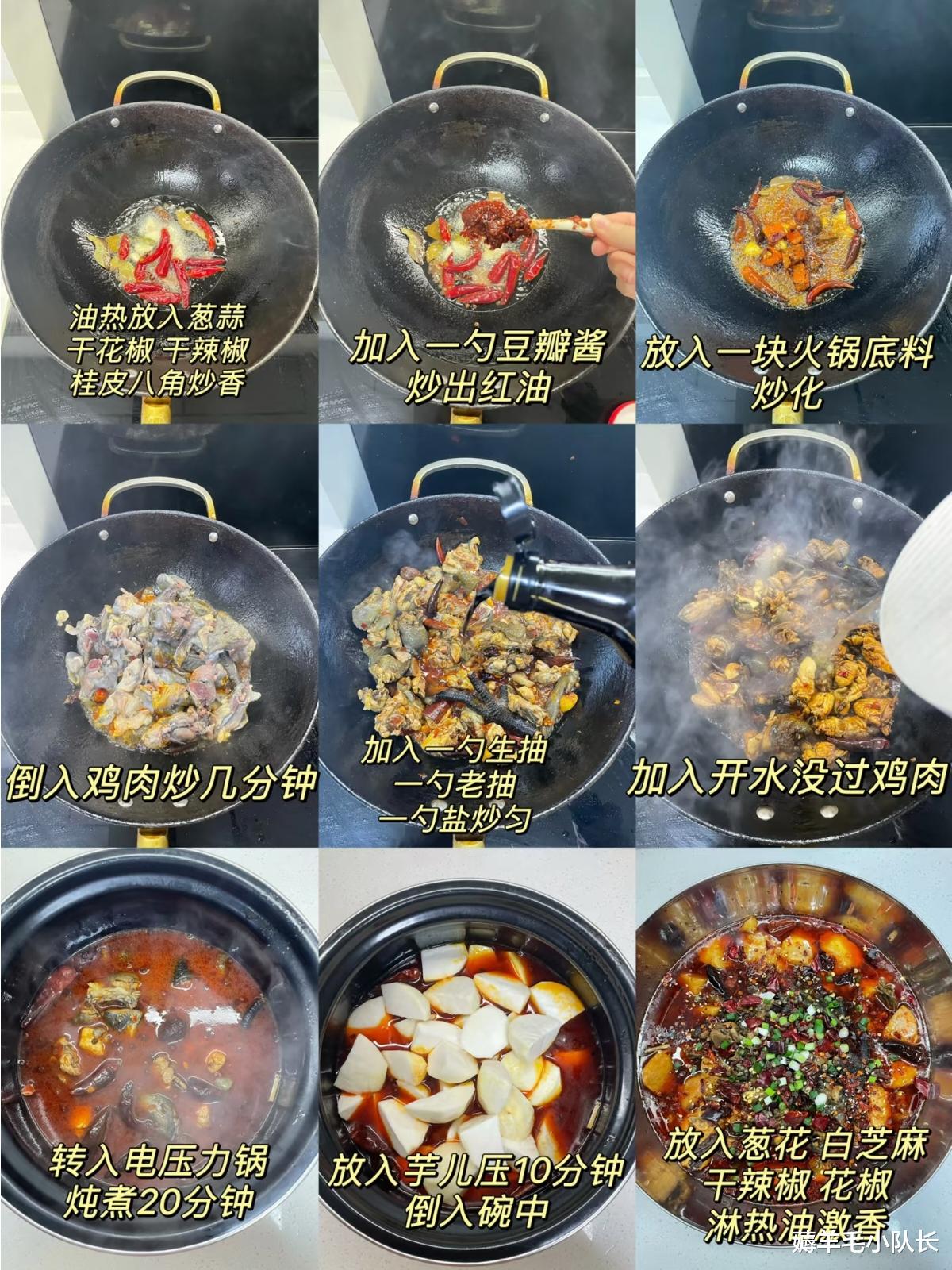 一道色香味俱全的火锅芋儿鸡就大功告成啦!赶紧趁热享用,让这道美食带给你无与伦比的味觉享受吧!家人们一定要试试,相信它一定会成为你餐桌上的最爱!