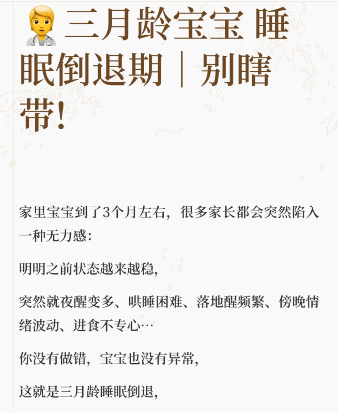 很多妈妈发现,宝宝刚出生那会儿吃了睡睡了吃,特别好带。可一到三个月左右,那个天使宝宝突然不见了,白天小睡变得特别短,晚上频繁醒来,哄睡也变得越来越难。别慌,这很可能是传说中的睡眠倒退期来了。