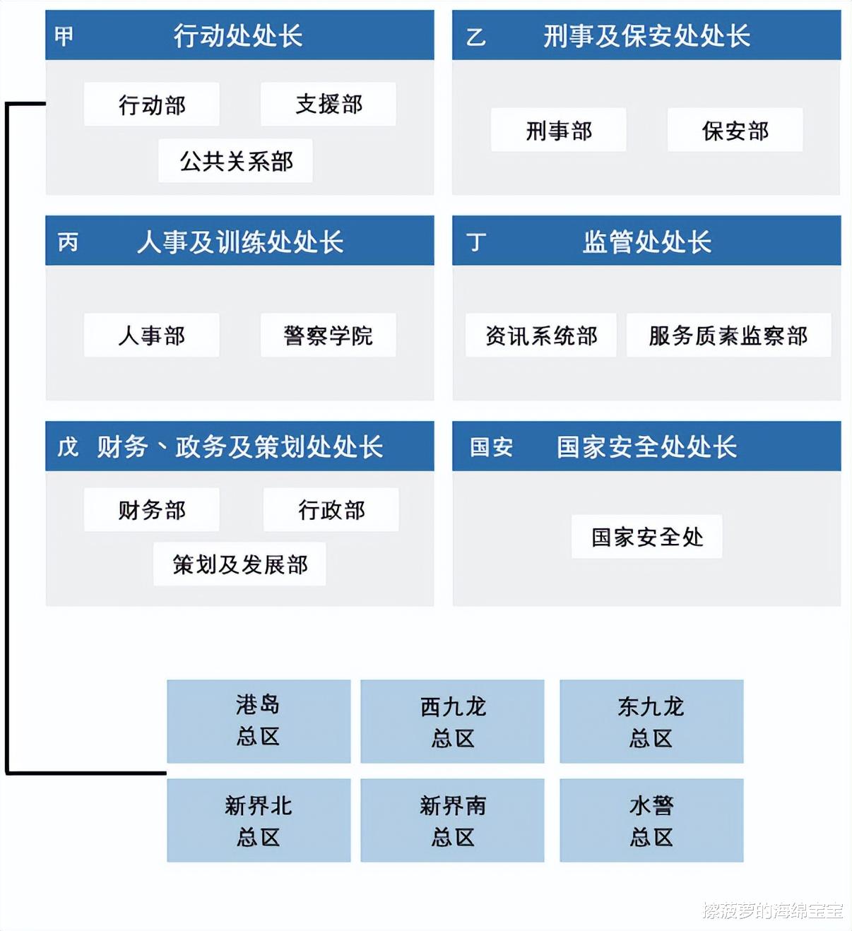 ●六个总区总部的四个部副主管;下属单位主管,比如总区刑事总部的罪案调查组,情报组,监察及支援组和反三合会组等。
