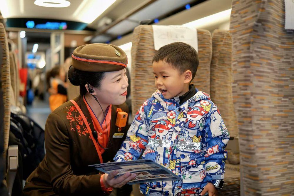 2月1日,武汉客运段乘务人员服务旅客出行。(肖冬桂摄)