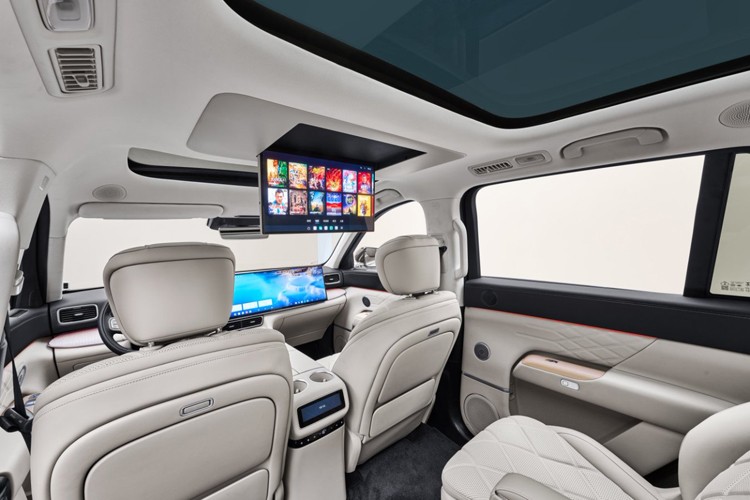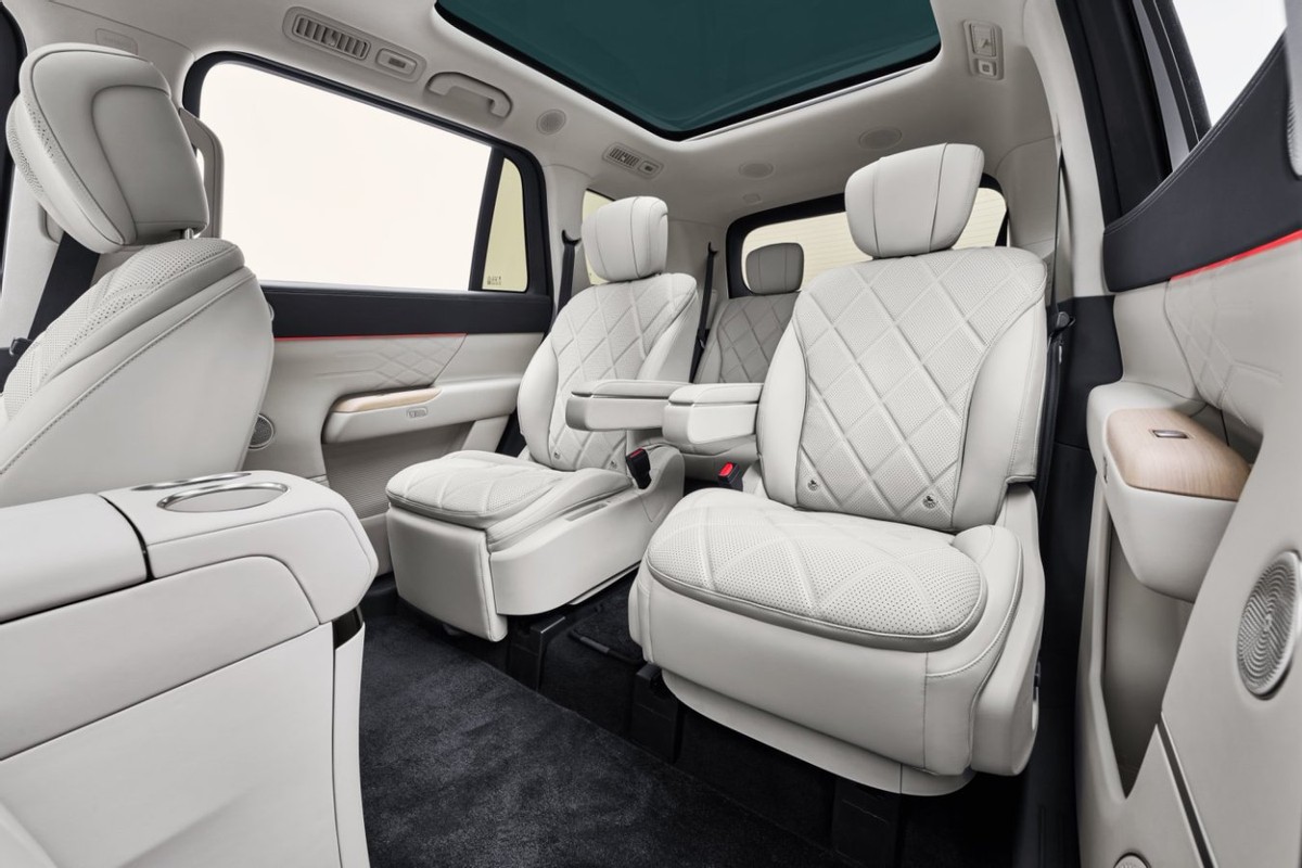座椅部分,二排采用零重力座椅,14向电动调节、扶手腿托、加热按摩都是基本操作;而对于一贯容易被忽视的第三排座椅,这台车不光头部/腿部空间充裕,还配备电动调节、三挡加热、66W手机快充等,让第三排乘员再也不用委曲求全。